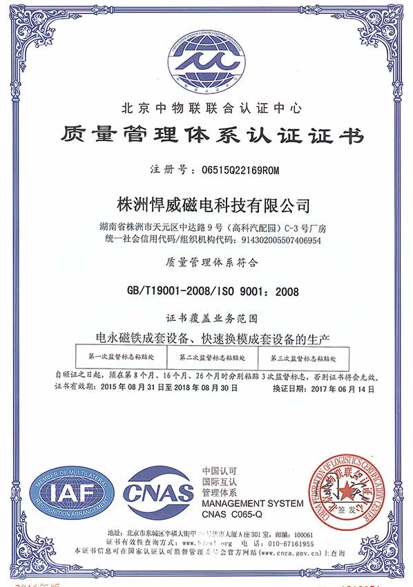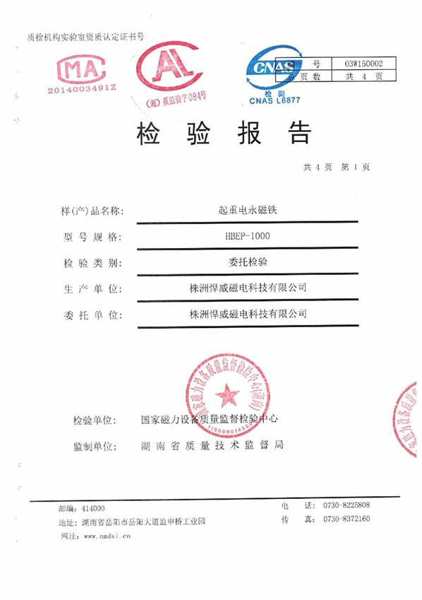 起重電永磁鐵檢測報告