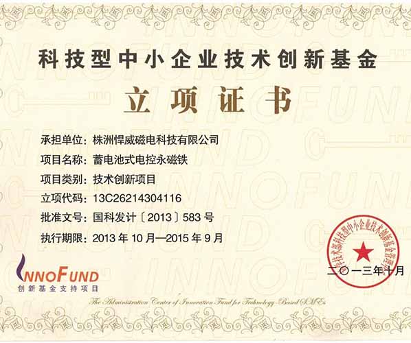 創新基金立項證書